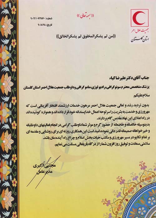 تقدیرنامه هلال احمر